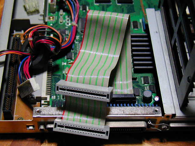 分解して電源ユニットその他を外すと、 メインボードからのびるフロッピー用フラットケーブルが出てきます。