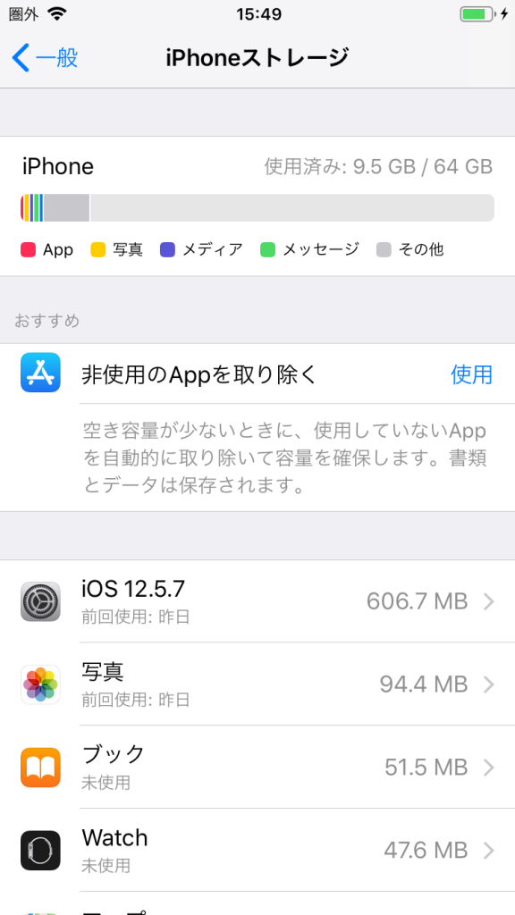 無駄なデータでストレージが埋めつくされていることを確認します。