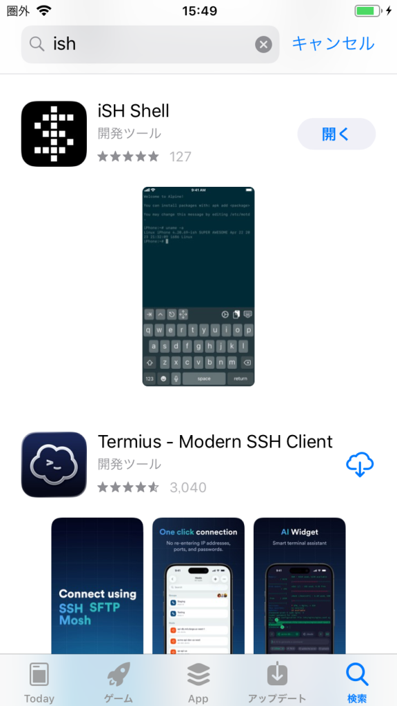 App Storeから「iSH Shell」をインストールします。